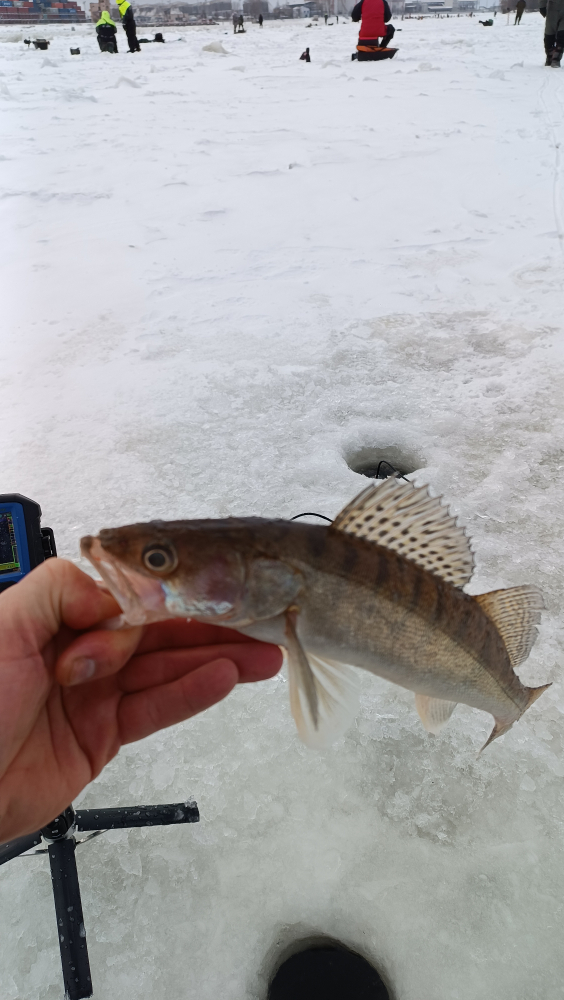 По просьбам трудящихся) никаких гор рыбы пока нет, но на 23 км( глубина 17,8 метра) вчера с 13:30 до 14:45( потом просто перестала клевать) поймал 46 штук. Утром пробовали в Молодёжном, это 12 км, сразу за Чёрной речкой, посидели до 11:30 на 10,6 метрах не одной полёвки и уехали на 23 километр. Лёд везде отличный, 10-15 см. Сегодня ночью сильный северо-восток, поэтому изменения со льдом будут. Дальше 23 км вчера льда не было.