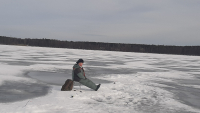 Наконец-то удалось добраться до ЮБ, а то я уж думал останусь совсем без Корюшки в этом году. Лед конечно уже совсем плох, мы были чуть дальше Гаркалово не доезжая Лог, с утра выезжали более менее, а возвращались уже по открытой воде ( на подушке) .