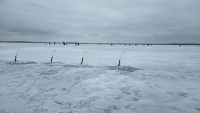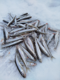 Вокруг человек 40, все стоят. Единичные поклевки мелкой корюшки, на 10 удочек с 09 утра вытащили не больше 10-ка. Наживка - карась, окунь, сама на себя - предпочтений нет.