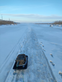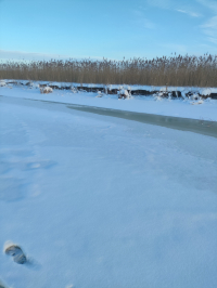 Правдинское оз. С утра пробовал ловить на жерлицы в самой южной части озера. Ни 1 поклёвки. 30см снега, под ним вода и лёд 1-10см... Хорошо что всегда пешня с собой. много "мокрых" пятен там промоины. Да и без пятен они есть. Народ ходит на шару, не знаю о чём думают.