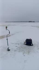 Вторая: бур всё-таки обмерзает на ветру, что вполне естественно. И вот, при традиционном втыкании шнека в лёд на то время пока ты ловишь рыбу, шнек там может намертво вмёрзнуть. Вмерзает нижнее кольцо из толстой пластмассы, призванное очевидно защищать от механических нагрузок тонкий пластик самого шнека. Возможно эту проблему уже обсуждали, но я на своём опыте столкнулся с ней только что. В один раз я еле освободил шнек от ледяного плена.