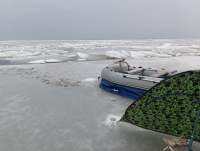 Встали на 20_19.5 м. Лёд полметра. Народ помахивал, у нас не особо. Пошёл искать. Прошел в море на 1.7 км дальше. Летали 6 лебедей. Везде глухо, хотя рыбу видит. Потихоньку вернулся. Друзья помахивают, я за и спереди . ноль. Решил пойти ко второму экипажу , стояли во льдах.