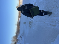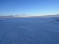 Всем категоричный привет! И с Новым наступающим! Сегодня . Цель -разведка боем .Ещё не открывал . Рёгово-никого нет к 10-30, старый канал стрёмный , даже пробовать не стал дальше.Леднёво, никого-канал с жёлтыми закраинами и пятнами посредине, не пошёл. Чёрное - вышел. Народу человек 20 . Все жмутся к берегу . Позже выяснилось, что не зря. Чуть позже несколько двинулись чуть дальше. Лёд - пирог , 2см-вода -3см. Пять оборотов . Выдвинулся за смелыми , ввалился , по пояс . Глубина -1.20. Выскочил за 5 сек. Сухой , костюм не подвёл. Забурился метрах в 200-х , сразу глухой зацеп. Не стал форсировать , чуть раскачал , поднял , отцепил блесну.Ожидал всё что угодно, ветка , тряпка, нет , летний двухметровый подсак.Еле выдрал через лунку.Ну и на обратном пути у берега ,до кучи ко всему ,ввалившаяся "собака " и два "горе-собаковода"Ввалилась с утра. Причём поставили и ушли , видя , что лёд тонкий.Видел , когда пришёл , уже лёд просаживался. Пришли-утонулаГлубина чуть больше метра.Пытаются достать .Да куда там , 150 кг со слов хозяина . Присоединился , бесполезно,только лёд ломает. Ещё пару человек надо .Хоть и досок и щитов натащили с берега. Пошли за местными. Двоих нашли, ещё только начали отмечать . Они набили майн , протащили верёвку как на сети с помощью приблуд. . К берегу и мельче и лёд потолще.Верёвка мощная и длинная .Тащили вчетвером , по дну. Когда руль стал цепляться за лёд, метров через сто,обдобили вокруг .Один щит подкладывал на край льда , чтобы не цеплялась гусеницей. Ну и доски тоже были , иначе лёд ломается . С помощью всем известной матери выдернули на лёд и в корыто. Лёд проседает под тяжестью , пока останавливаемся, таща на берег. Тем не менее положительный заряд получен , хоть и рыбка не поймана.
