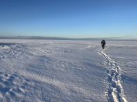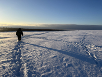 В озере лед сантиметров 8+-, не трещит. Кто то даже на собаке ездил)