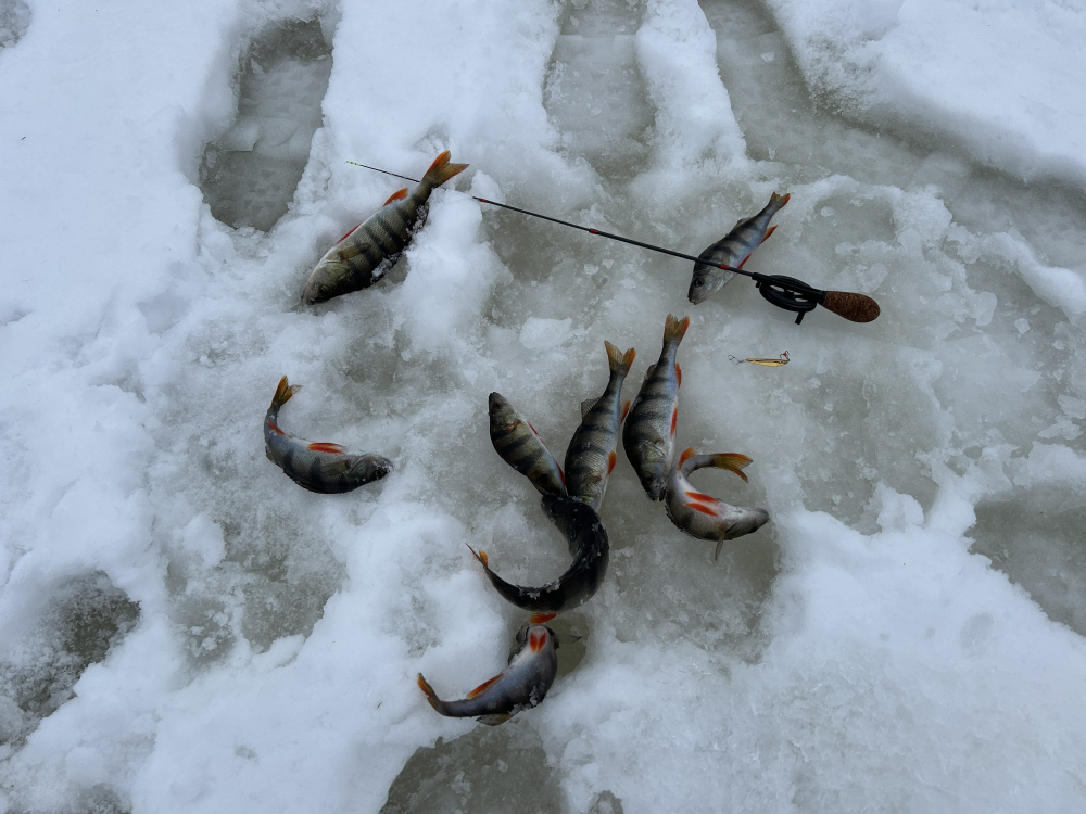 И даже жадность победил, много рыбок отпустил. А окунь который от прежнего место с последней рыбалке никуда не ушёл клевал с темноты и был использован как живец. А потом он мне не был интересен . Флажки один за одним развивались на ветру, штук 20 щук было поймано , с жабой боролся как мог но всё же на грани греха и придётся к батюшке наведаться всё же.