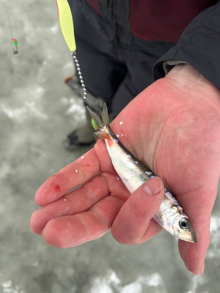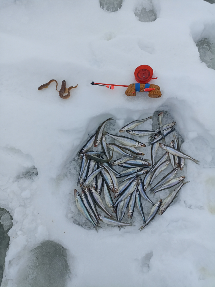 Выезд спонтанный получился,котяра в 5 утра пожрать захотел.Яшка как всегда обманул,показал погоду -20 градусов,только в Зеленогорске почувствовал обман,когда на панели приборов высветилось -23,по приезду на место -27,в такую погоду я давно не рыбачил,оказалось всё не так страшно,когда выглянуло солнце вообще ляпота.Встал на свал 16-18м,наживка карась,так как выезд был больше прогулочный в районе 14 стал потихоньку собираться,ну как обычно руки заняты клёв начался,но не повёлся я.Свалил в 14-50.по результату 70шт корюшин и пару бельдюг,можно было и за 100 сегодня уйти,но упора в количество сегодня не было.Лунки три раза новые сверлил,с 130 за пару часов оставалось 50-60.Вообщем отдохнул хорошо,это моя 4 рыбалка на этом месте,в этом году,результаты 96-86-40-70шт.