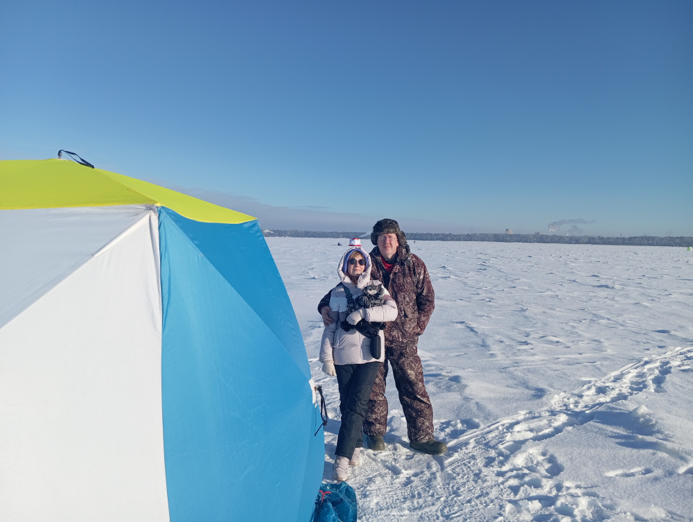 К другу Лёше жена пришла на лëд с собачкой, благо дом в 3х км. Прогулялись, морозом подышали, погода сказка, по 5 рыб подняли..