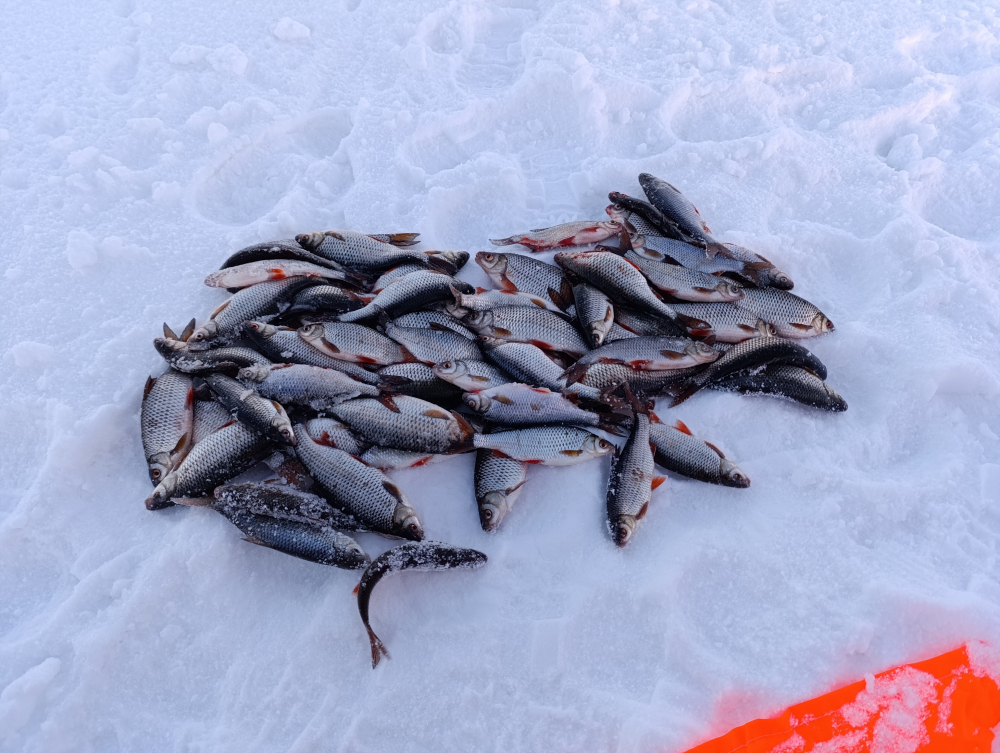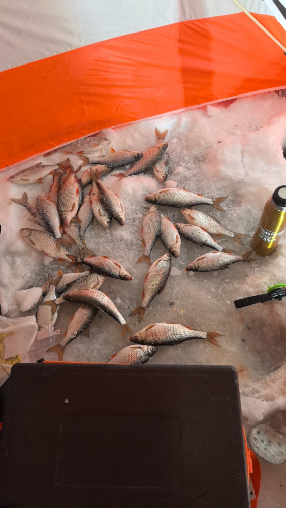 Был в Репино 06.01.26 на плотве . Мороз с утра -24.На место пришел в 10:30 , закормил и спустя час , стало поклёвывать , основной пик клева с 14 до 16 , глубина 9м , итог 71шт , на 10.5 кг