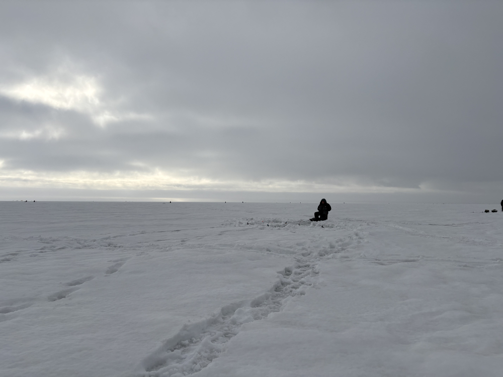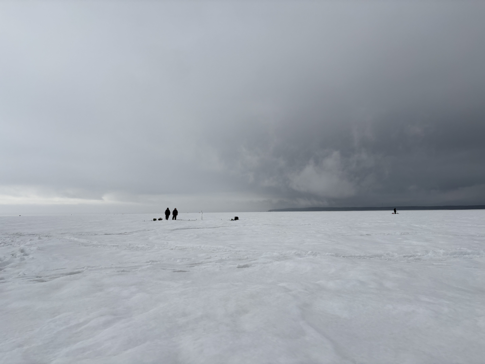 Вчера (07.03.2026) в Смолячково с 8:30-15:00. Туда утром идти нормально, наст частично подмерз, а обратно уже раскисло, но терпимо. Глубина 14м. Один дуплет и в прилове одна мелкая корюшка (была сразу порезана на наживку). Дуплет был хороший две мамки, как раз на сковородку хватило.