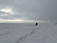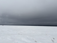 Сегодня на берегу был в 09-00. По воде у берега, чего я боялся, всё нормально, т.е. вода есть, но мало. Зато много снега, идти удовольствие для избранных, да ещё с утра туман. Немного отошёл, а берега уже не видно. Навигатор с утра даже не включал, решил ориентироваться по народу. Остановился в чистом поле на глубине 8 м, посидел, ничего. Чуть в море сидело 3 человека, явно не на корь, решил попробовать там. Там глубина была 8,5 и чуть больше, но тоже ничего. После этого и прошёл то чуть, а глубина уже больше, чем на метр больше. Там кто-то тронул блесну, ага. Посидел и поймал двух, правда, весьма некрупных, зато зацепился. Ну а больше и рассказывать особо нечего, со следующей лунки больше десятка, через лунку такой же результат, потом вообще больше 20 шт. Клюёт в основном аккуратно, часто поймать удаётся не с первой поклёвки. Зато ловить можно в удовольствие, хошь стоя, хошь сидя, никто не мешает, ходить-то тяжело, поэтому народ не бегал. Рядом ловили два парня, но они не мешали. Давно не ловил, чтобы было так тепло, рукавицы почти не надевал, лепота. В 15-40 решил: "А куда мне столько рыбы?" И пошёл к автобусу.