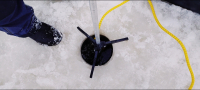 Напротив створов я поймал густеру с глубины. Это уже хорошо. Рискую выходить за торосы. Лёд неоднородный: где-то дырка, где-то шуга, и не всегда можно пробить.