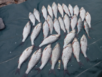 Был 30.09.25.. сайт ПКР не работал, пишу чуть позже.. погода супер: ветер 4-7 м/с.. потроллил - мелк.окунь ( отпущен) , встао на 3х метрах на 2як прикормил - мелк. плотва - отпущена и 3и крупн. ельца. Время потеряно, понял что если заморозки - рыба сваливает поглубже. Завёл мотор и глисс на 6 км, ближе к Горбатому, там ямы 5 м.. Только прикормил - и режим лифта испытал. Прикорм - гранулы, работала и поплавочная удочка и бортовая с кивком! Насадка опарыш: красный и белый. Плотва достойная, сопротивление достойное. Поймал чуть более 7 кг.. Вся рыба крупная (200-400гр)