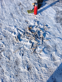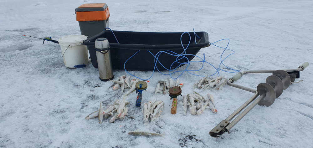 Пытались выйти на штаны не нашли точку не работает навигация, в итоге блуждали до 12. Решили идти домой, но по дороге обратно случилось чудо в одном месте завоевало и клевало до 17:00 понимал 10 бельдюг, 58 корюшин морского таракана три мамки, товарищ так же 58 шт много холостого хода было, всем добра. А насадка креветка, карась, бельдь.