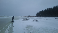Сделал штук 20 лунок в надежде увидеть в эхолот хоть какие то признаки жизни, но увы. Про залив от Соснового Бора и до Усть-Луги наверное можно забыть.