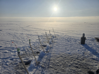Всем добра.Наконец-то решил открыть сезон корюшки и заодно впервые скататься на Толобуху.Погода морозная,но без ветра.Уехал на дальнюю банку.Глубина 14.5.Вчера клев с 10.00 до 13.00 активный потом потише.Уезжал в15.30 еще клевало.Размер мелкий.В основном на красную шапочку.Сегодня похолоднее.На берегу -22.Клев опять с10 до 13.Потом надо было на берег.Результаты вчера 84шт. сегодня 32.По одной порезано,но основной клев на свежего карася.Завтра на 58.Отпишусь.НХНЧ.