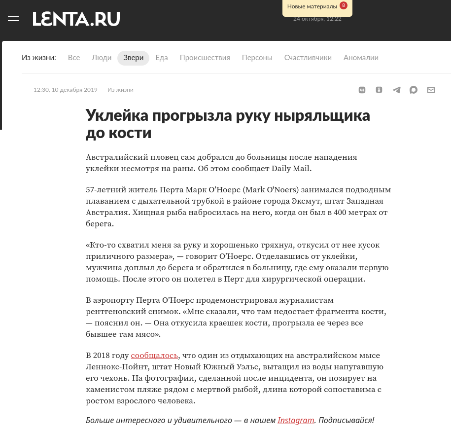 Dreamer это ошибки перевода, там скорее всего барракуда) у нас журналюги жгут хлеще, раз читал где-то что с трюмными водами в Финский залив попала амазонская пиранья и скрестилась с миногой, и этот зубастый червь пополз по канализации и уже были случаи когда откусывали бубенчики у сидящих на унитазах граждан😂 так что мы все в опасности, но Валерон однозначно в группе жуткого риска))