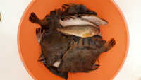 Прошлой зимой, в районе Курорта поймал одну камбалку. В тазиках каменушка и терпуг, последние рыбалки в Авачинской губе, у Никольской сопки.