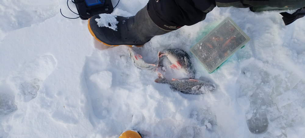 Вчера, 22 февраля, под вечер мы прибыли на реку. Начиналась пурга, но мои спутницы, Александра и Екатерина, упёртые рыбаки, решительно настроились обследовать ближайший участок реки с помощью паноптикса. Мы быстро осмотрели два берега, край ямы и саму яму, но большого скопления рыбы не обнаружили. Стемнело, и мы решили не тратить силы впустую, разъехались отдыхать.