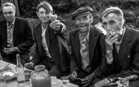 Это что то из оперы: "Я твои фото на ... вертел!?!?!")))) На первом фото тот, что маленький, еле стоит и глаз уже не видно... Видать не одна бутылочка ликера была... Иначе бы так не омурлел...))))