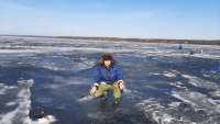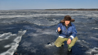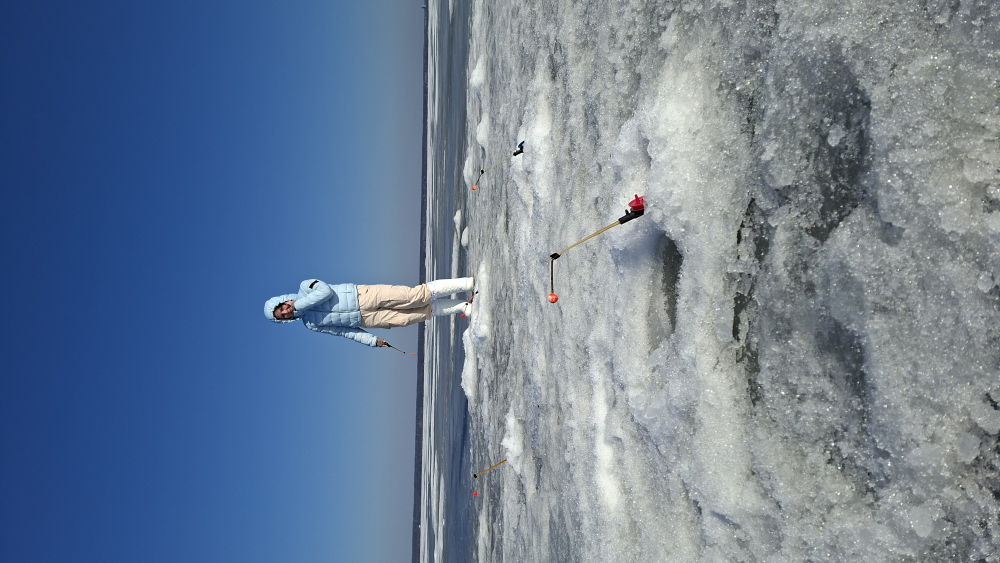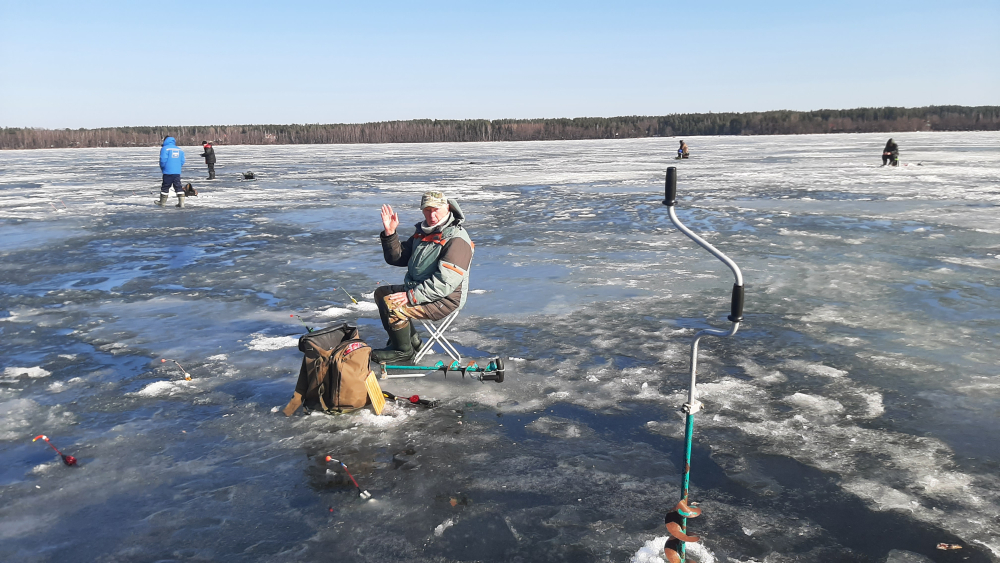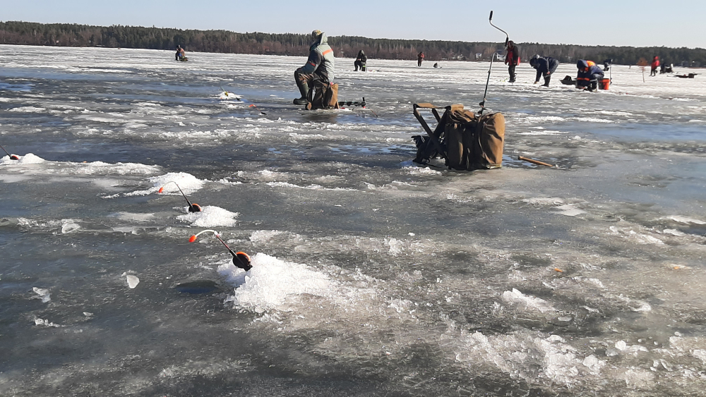 Хоть солнце шпарило, лунки подмерзали чутка.