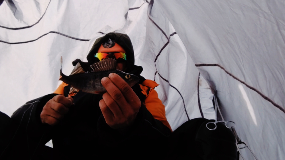 Сегодня с утра дождик, выдвинулись на любимое дело, природа сразу подарила ясное небо с солнцем, облаками и сильным ветром. Очень тепло, варежки, перчатки не нужны. Стали обрабатывать вчерашние лунки в надежде на полосатых толстых кочегаров. Но, увы, местечко молчало. Константин мокал железо, я мормышил. Передвинулись и по пути проверили жерлицы. Аллилуйя, вот он, карельский чёрный налим до килограмма. Невелик, но мы нашли его тропу. Дальше почти на всех точках как из пулемёта мелкий, средний окунь. Надёргали живцов, на завялку и на поесть пузатики попадались. Нужно отдать должное академику железного дела, гуру Константину, он выцеплял на блесну окуней хорошего размера. Я не сразу, но подобрал безмотылку и зарядами по 15+- штук с одной лунки брал. Перезарядили на живцов вчерашние жерлицы и добавили ещё внушительное количество до обеда и после уже с живцами. Рыбачим на глубинах от 5 - 6+ метров. Вокруг никого, машем руками как вздумается. Сегодня ужинали на улице, провожали светило за горизонт. Солнце утонуло в тучи, надвигается фронт. Ветер усиливается, ждём капли плачущих небес. Главное, мы ко всему готовы и кайфуем дальше. Пойду на алтайском комусе поиграю, нашаманю добра. Завтра будем пожинать.