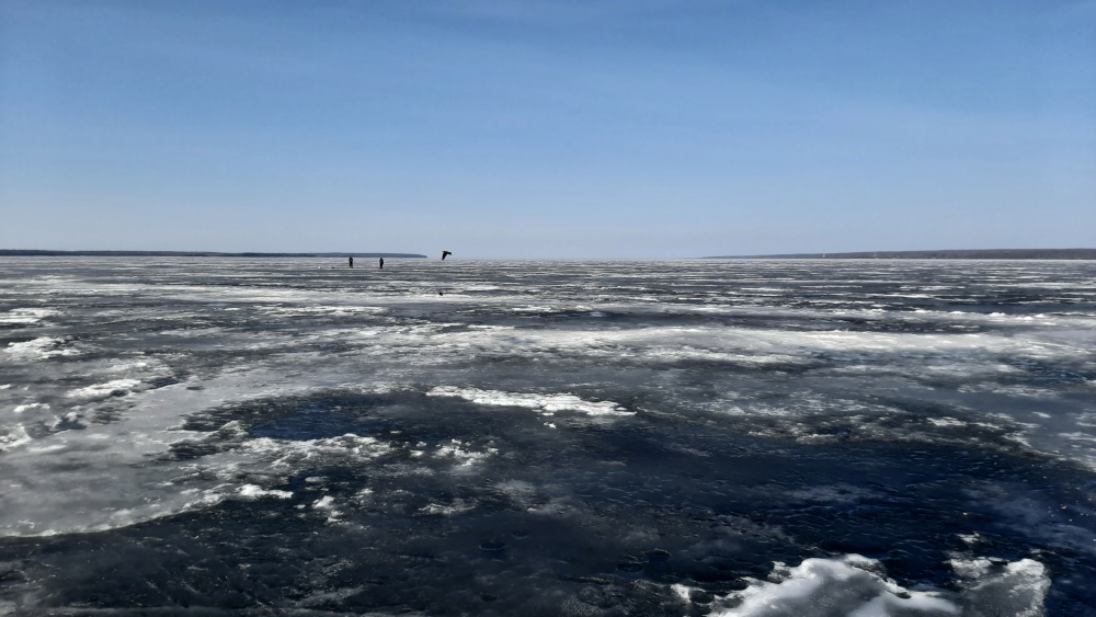 Самое важное - у берега таки появились промоины, глубина смешная там меньше метра, но все равно неприятно, пехом просто мокрый. на технике - вытаскивать. Соответсвенно вечером и с утра надо быть осторожным. Не идти по желтому снегу и льду (и для чая их не брать).