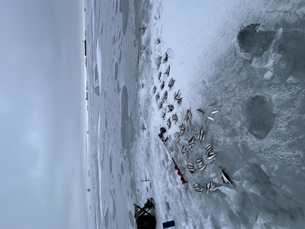 Всем привет.В воскресенье,Приморск,старый рыбозавод, лёд сантиметров 50, воды на льду много. 57 штук(в основном мелкая)+бельдюжка+ бычок. Спутники глушат
