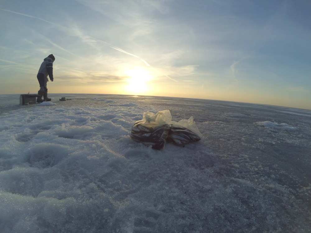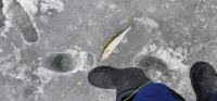Клев целый день, утром лучше. Заход нормальный, но наст уже не держит. На обратном пути , метров 100 до берега, уже проваливаешься сантиметров на 15 местами. Техника присутствует.