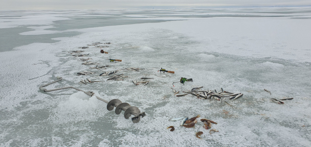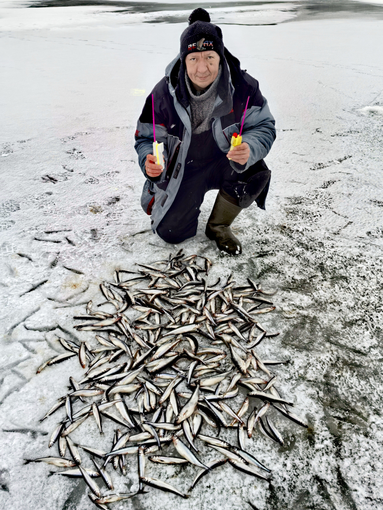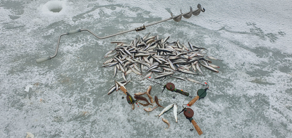 Много дуплетов, несколько шт было забагрено. Дуплеты и с корюшкой, и смешанные - с бельдюгой и бычком, и ершиком.