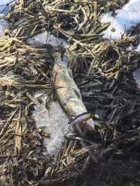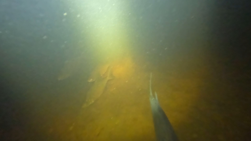 Поплыл в сторону проток, на берег из за закраина льда не смог выходить но и особо не старалась переживал за свой 7 мм костюм.