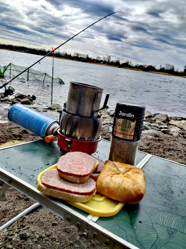 Приехал к 7 утра, погрузил на арендную лодку прикорм, якоря, жранину, навесил свой движок, доувлажнил прикорм, хлоп...а удилка осталась дома)) Пришлось ехать в Окунек и ждать девяти утра. Закупил Китай болонку и Китай катухер с леской, на них и ловил..были мысли кста как раньше срезать прутик в кустах, но что-то не решился!