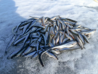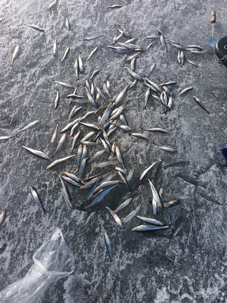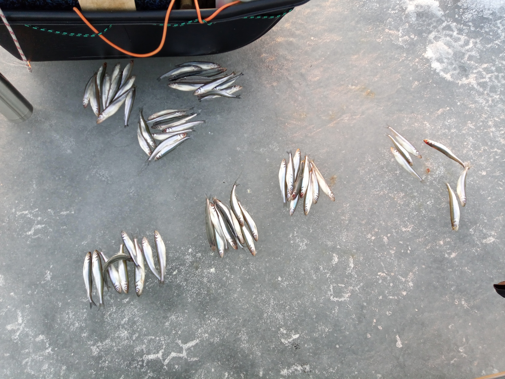 Сегодня 21 км, глубина 21м, 2.5 кг средне мелкой корюшки. Утром с 7,30 и до 10 на карася равномерно, с 10 и до 13 в час по чайной ложке, и до 16,30 порывами, но сама на себя получше. Вокруг народ скучал, видимо шаманские бубны в магазине закончились! Ездил с напарником, поджопник вежливый попался, спросил можно я между вами встану, а между нами метров 20. Отказали в просьбе вежливо! Напарник тоже нормально поймал, но поменьше моего. Лед сухой но уже не монолит, скорее всего закрыл сезон. Утром туда по насту прошли хорошо, обратно местами дристалище.