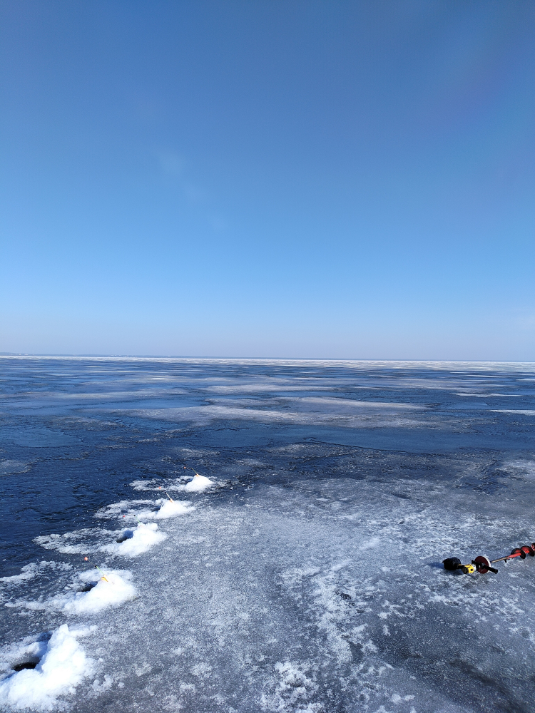 "Да прибудет со мной сила и Петрович": сказал я и погрузив его вещи мы рванули в Манолу.На месте в 7-00,на банке Вазгена III в 7-30.У меня клевать стало практически сразу,но вот Петровичу опять не фартануло(опять нарвался на "кукурузные поля")сидел и охранял их🤣🤣🤣.Я побегал до 11-00 и потом как обрубило.Петрович перебрался ко мне и мы вместе стали охранять "царицу полей".заход нормальный,лед см 20,но пропитан водой,лунки расширяются на глазах.Выходили в 15-00 тоже без проблем.По итогу у меня 47шт+4 бельдюги.У Петровича чуть получше чем в прошлый раз Аж 9 шт+1 порезал.Ну стабильность-признак мастерства как у НЕГО.