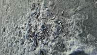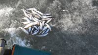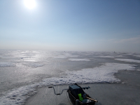 Репино. Корюшка. Заходил от флагов и на 11 метров. Сегодня результат поменьше .Всего 103 шт.на 2.4 кг.средне -мелкая. С утра думал пролёт ,а под вечер повеселее стало. Ледовая обстановка ,на мой взгляд, еще нормальная ..Недельку постоит. Туда как по асфальту ,а обратно проваливался. Сверху корка 2 см .Под ней вода 4-8 см., а потом лёд основной .На точке ловли он 50 см. Техника ездит .