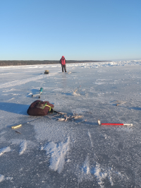 Правдинское оз. С утра пробовал ловить на жерлицы в самой южной части озера. Ни 1 поклёвки. 30см снега, под ним вода и лёд 1-10см... Хорошо что всегда пешня с собой. много "мокрых" пятен там промоины. Да и без пятен они есть. Народ ходит на шару, не знаю о чём думают.