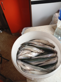 Сегодня с 7 утра до 15 часов 4 кг корюшки.В штуках не считал.Очень много самцов с молоками.ведро 5или 6 литровое