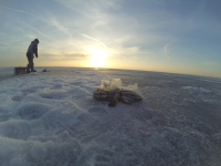 Вчера в компании двух корешей и сына в пять стартанули к маяку на 58 км. Правда какой то информации об успешных проклевах не было, но решили ехать, закрывать сезон со льда. С учетом информации из отчетов сложилось впечатление, что рыба к берегу не сильно то и подошла, и тусит на глубинах более 20 метров. Навигатор не работал, поэтому помня карту глубин прогулялись почти три км, Встали на границе разных льдов, глубина 24 метра. Где то рядом должна была быть банка с выходом на 18 метров, но тратить время на ее поиск не стали. Клевала набегами, мелкая, средних и крупных мало. Поклевки деликатные, подсекать трудно. течение было, но слабое в сторону Приморска. Засветка мормышек и смена карася немного расшевеливали рыбу. к обеду пойманная бельдюга с пузом немного исправила ситуацию и кореша (у него к этому времени подстихло все) а у меня с сыном случился лифт на три удочки с включением четвертой примерно на часок. Видимо сработала прикормка))) За час до этого утопил за спиной в 5 метрах от удочек труп карася, с которого резал наживку))) Вот теперь думаю, совпадение это или все таки трупак с кишками наружу приземлился как раз в этом месте и рыбы там начали крутиться...)))) В итоге результаты 30 и 50 у друганов и 120 у нас с сыном. Теперь про лед на северах: с утра наст держит, после обеда проваливаешься местами на 5-7 см , сам лед мокрый, уже кристаллизуется, при толщине в 25-30 см бурится за 12 оборотов. Для себя решил, что пару дней и на такой лед только в гидрокостюме. В любой момент он может перестать держать, а с учетом сплошных плюсов по прогнозу, пора удочки на прикол класть до следующей зимы. Всем ни хвоста ни чешуи!