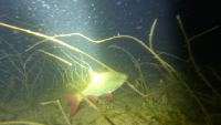 Рыбы как и собственно воды нет, тростник весь на берегу а в тех местах где он немножко в воде никого нет, за два часа три мелких окуня и пару плотвиц заметил не большого размера.