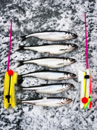 Корюшка средне-мелкая. Много холостых поклевок. В итоге до 15-30 двадцать корюшин и один ёрш.