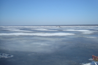 Сегодня в 13.00 проезжал по дамбе.С юга первым второй пропускник, льда практически нет.У стоянки человек 20-30.Кто то у берега кто то у фарватера.Лед черный.На севере никого.