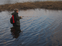 Поехал на разведку к Юшково.. Народ отсутствует. Выплыл на лодочке и прошёлся вдоль камыша. Воды мало. Глубина от 30 до 80 см. Закончился в одной точке. Через 15 минут поклёвка и сход. Потом попался язек примерно 300 гр.и 2 красноперки грамм по 150-200. Утопил. Не вкусные. Пошел на другую точку. Закончился. Через 15 минут поклёвка и поймал 4 красноперки. Утопил. Сменил ещё 2 места. Больше поклевок не было. В 14.00 поехал в Назию. Народа 3 человека. Говорят, что утром поклевывало. Елец. Червь и опарыш. У мужичка Штук 20 + хариус. У меня поклевок не было. Через 2 часа свалил. Видел стаю первых гусей.