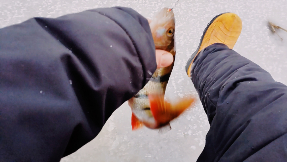 Ночью проснулся, не мог уснуть, чувствовал прилив сил. Матушка Свирь звала меня. Тщательно собрался, удалось немного поспать. К рассвету поехал на мотовездеходе в Свирицу. Дождался рассвета под берегом, половил плотвичек, но цель была — окунь. Решившись, один отправился к заветным местам. С первой же лунки вытащил трёх полосатых краснопёрых. И наступила долгая пауза.