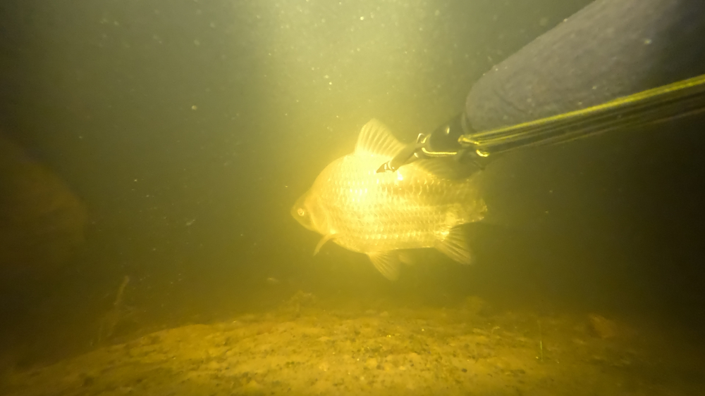 Меня вчера так отметелили что я и не думал что мирная плотва на такое способна. Как только свал начался на глубине 2 и более метра там на дне толпы плотвы носятся как угорелые и им явно было пофиг на меня подводного охотника, били без прицельно везде но чаще всего это передняя часть меня тобишь голова. Разок даже маску чуть не сбили, уже ближе к Ореху где течение стало сильнее натиск плотвы ослаб и я благополучно вышел у ногого пирса.