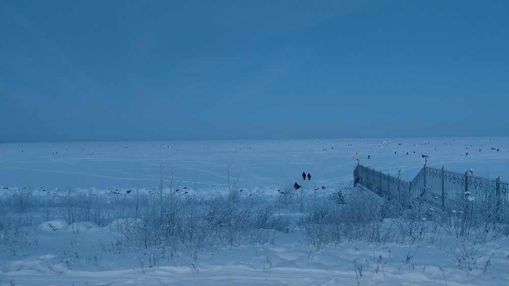 В результате, на западной окраине северной толбухинской банки были только к 10:00. Вокруг всего человек 15-25. Морозно.