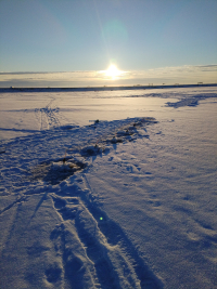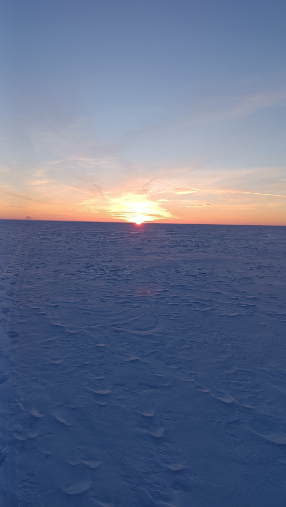 Всем привет!!! Причастных с днём Святого Трифона. Сестрорецк,гаражи. Вчера была дилемма-ехать или нет. Несмотря на прогноз,решили ехать. Около 7 на стоянке были третьи.Потом народ начал подтягиваться. На улице - 18. Выехали на лед-впереди огни в районе форта Первомайки. Рванули туда.Проезжаем форт-огни впереди,слева Горбатый уже остался.Руки замёрзли,встали. Огни вдали. Куда ехать? Впереди похоже уже Обруч...Никого рядом. Разворачиваемся. Идём в обратку,едем,встаём,смотрим -навионикс-тел сел. На Гармине нашли прошлогоднюю точку-поехали.Замёрзли. Вплоть валить до берега.Настоял,нашли,встали. Палатка,печка,отогрелись. Две лунки в палатке первые,удочки снизу блесна дали первый результат. 2 Штуки! Ура! от ноля ушли! Хоть и дует, вне палатки поставили 4 удочки. К 10 проклюнулось немного,и так до 14 -ти.С переменным успехом,даже успели покушать,наковыряли 61 шт на 1.8 кг. Мелких три,крупных нет. С икрой мало. Прибыли к гаражам последние,рядом только микроавтобус был. Всем НХНЧ!!!