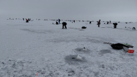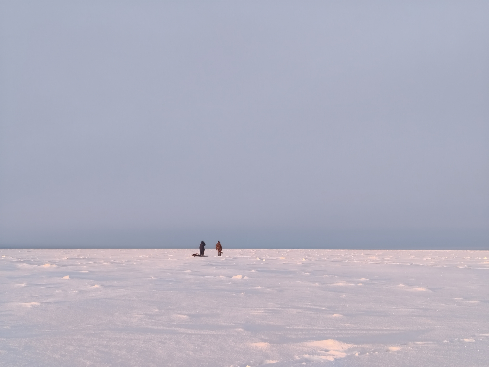 Приехали, дошли до точек, забурились на десятке. Холодало. Ветер гнал позёмку в лунки.