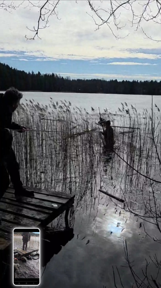 Всем добра и привет 👋 с раскисшей реки. Сегодня с утра подмороженный наст держал, без труда перешёл Свирь и стал двигаться от гнезда до приямка. Всё как в ванной, на эхолоте отдельные рыбки у дна. Перешёл реку и оказался у песков или столбов куч, как мы их называем. Проверил все глубины от 7–8 до 3,5 метров. С утра было пусто. Встретил трёх пожилых рыбаков, назвал их каскадёрами, которым дома не сидится. Нашёл для них рыбу на пяти метрах и предупредил о пути назад. Вроде послушали и двинули в нужном направлении. Валера ковыряется на приямке напротив Гороха. Валера, спасибо, ты нашёл мои потерянные удочку и богорик. Жму лапу и обнимаю. Встретил Юлю с ребятами, как всегда, тили-тили-траливали. Юля созвонилась с подругой, та рассказала, как пожилой мужчина купался по горло в районе створов на глубине. Вроде всё обошлось благополучно. Не буду устраивать испорченный телефон, Юля сама всё напишет. Все, кто здесь, и друзьям-рыбоманьякам передайте: всё, хватит, опасно! Сегодня новолуние, конечно, мне интересно убедиться, как ведёт себя рыба ещё и под понижающимся давлением. Так вот, густера активна, окуня, если обнаружить скопление, можно натоскать. Леща в акватории Свирской базы не обнаружено. Посмотрим, что будет завтра. Если вы не живёте на реке и не видели становление льда, не знаете акваторию, где обратное течение подмывает лёд. Там можно ввалиться прямо коренной зимой в -20. Убедительно прошу вас, займитесь другими делами, не рискуйте. Близкие и друзья оценят.
