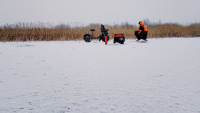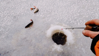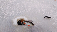 Продолжаю ловить, вдруг резкий рывок, потяжка — щука сорвала мою любимую шпротину. Пришлось подобрать что-то похожее, и рыбалка продолжилась. Окунь стабильно ловился примерно до 12 часов дня, потом стал мельче и совсем заткнулся, когда повалил снег. Глубина небольшая, лёд крепкий, уверенно держал меня на мотовездеходе, общий вес около 110 кг. Всё прошло без происшествий, разведка отличная. Спасибо, матушка Свирь, за эмоции, опыт и улов. Низкий поклон.