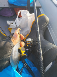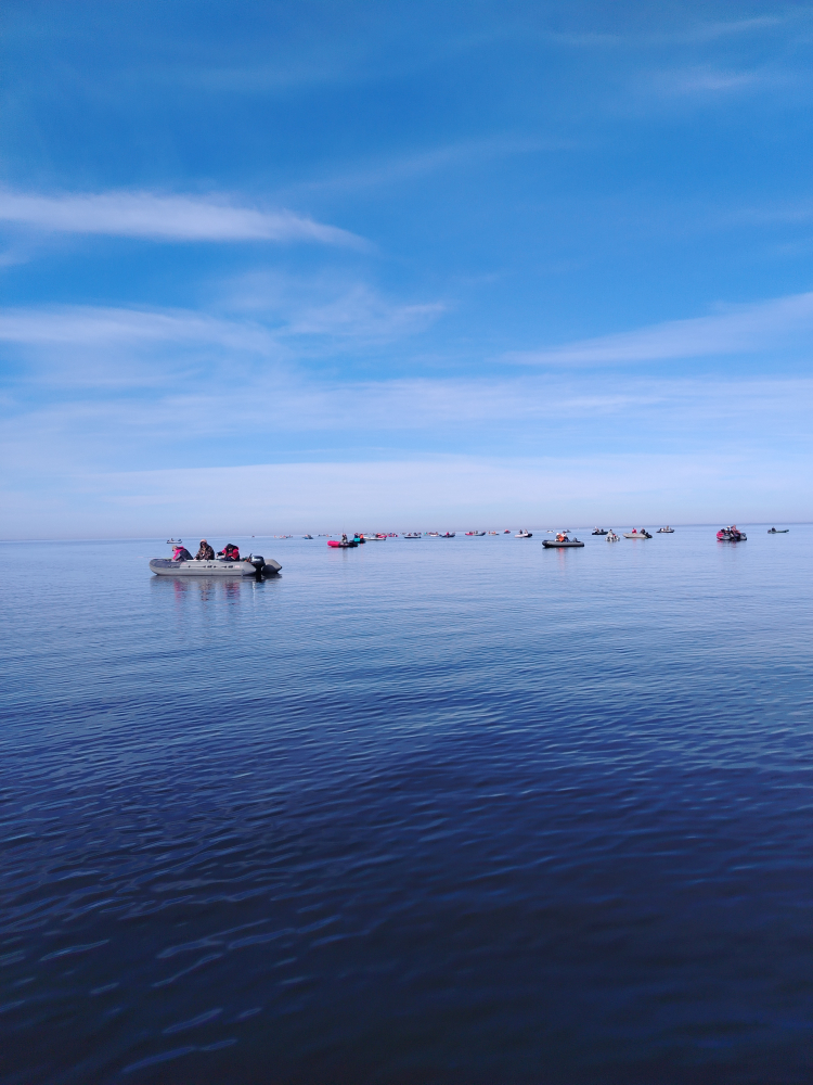 Подошла ладожская плотва 100-150 м за камыш. Клюёт хорошо. Предпочитает бондюль селёдки хорошие с 10 до пол 1, 6, 5 килограмм.
