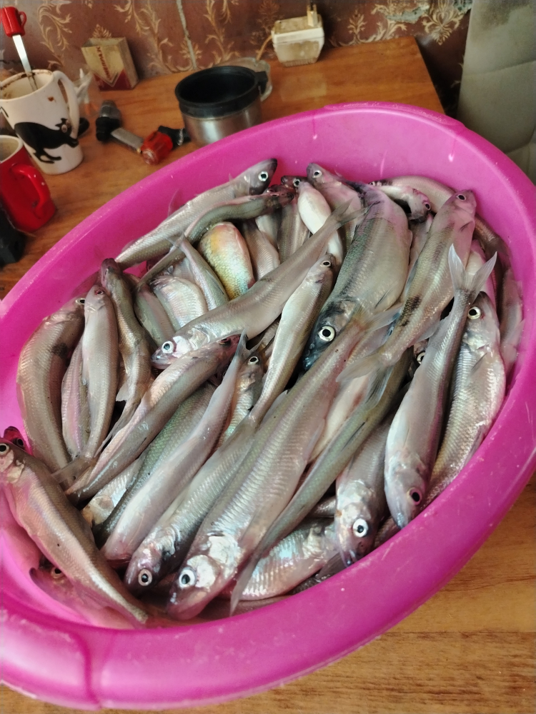 Две поклевки и две реализации. Особи, которые из Тосны случайно забрели под правый берег. И попали в желтое патиленовое ведро.
